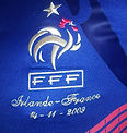 Peut être l'un des maillots les plus rares que nous ayons. Modèle porté le 13/10/1973 en Allemagne . L'une des seule fois ou l'équipe de France à jouée avec le coq"inversé"...